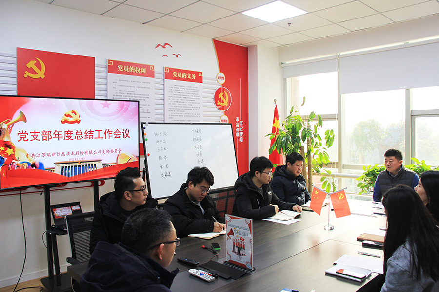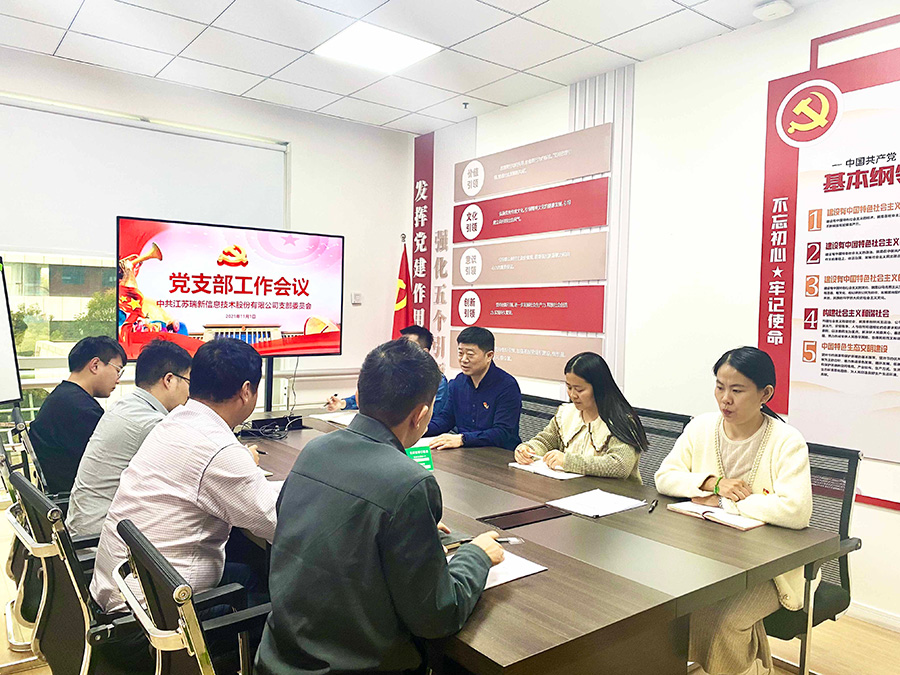 江苏瑞新党支部成立于2014年12月,隶属于常州市互联网行业党委,现有在册党员27名(其中正式党员25名,预备党员2名),入党积极分子2名。其中党支部书记1名,组织委员1名,纪检委员1名,宣传委员1名,保密委员1名。党支部以“红心向党、E心护网”为口号,以建设“网络安全红色卫士”党建品牌为抓手,不断加强支部的思想建设、组织建设、作风建设和制度建设,凝聚推动企业高质量发展的强大“红色动力”。